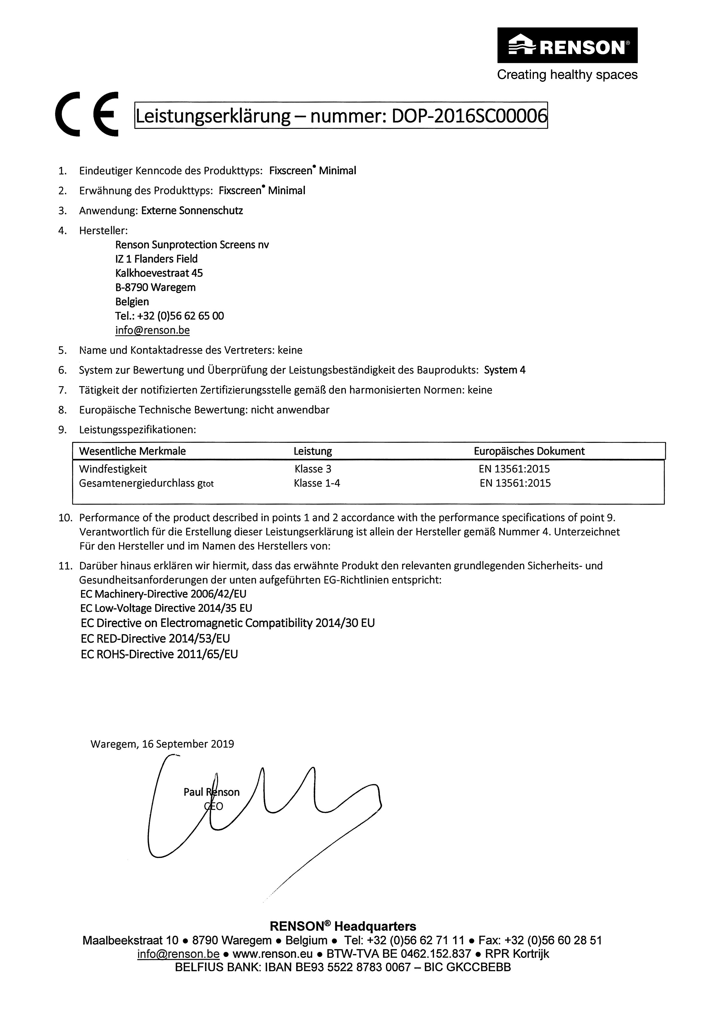 130 km/h setzt Renson® mit dem Fixscreen Minimal neue Maßstäbe. Das